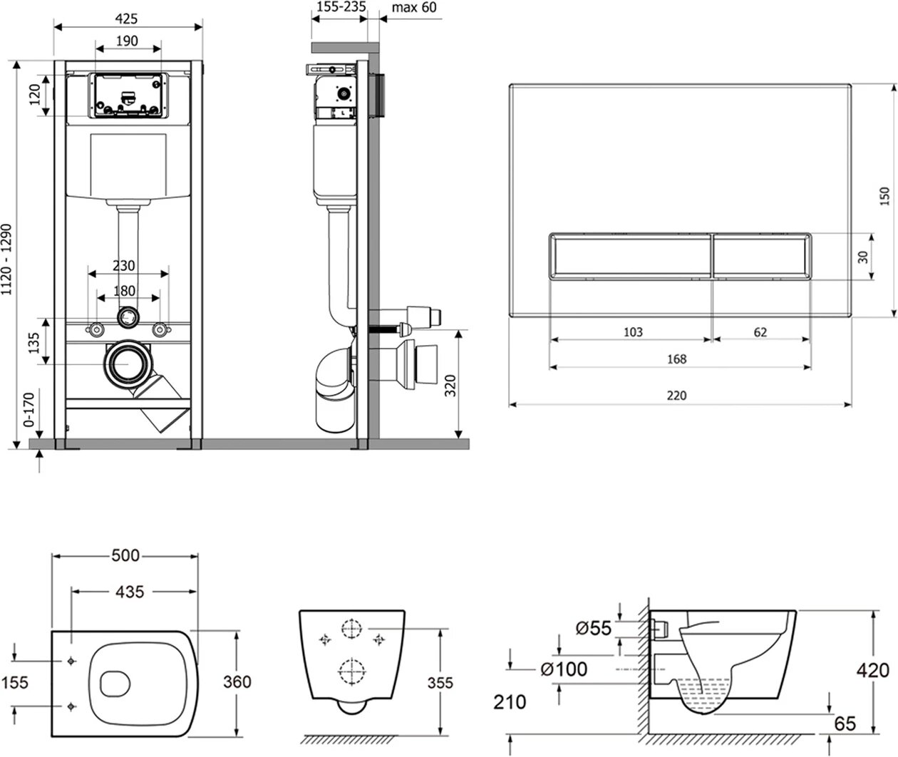 Подвесной унитаз комплект 6 в 1 Lavinia Boho Aveo Rimless 75110240: унитаз, сиденье микролифт, инсталляция, кнопка, шумоизоляция