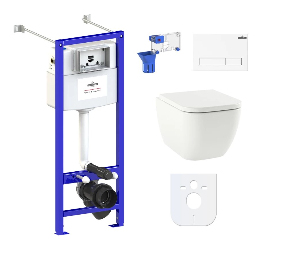 Подвесной унитаз комплект 7 в 1 Lavinia Boho One Compacto 87050149: унитаз, сиденье микролифт, инсталляция, кнопка, шумоизоляция, диспенсер