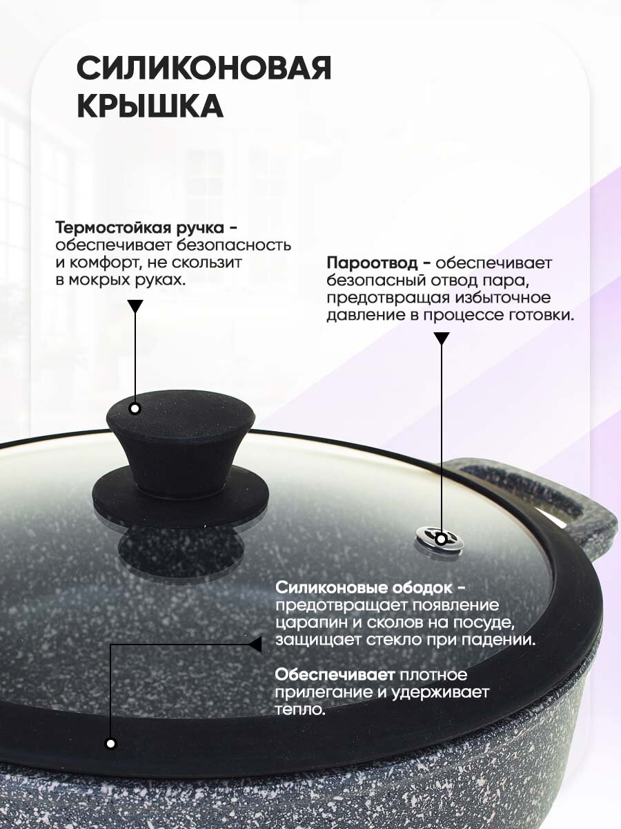 Жаровня 26см крышка с силиконовым ободком и ручкой "Гранит" тм Традиция ТГ9267 .
