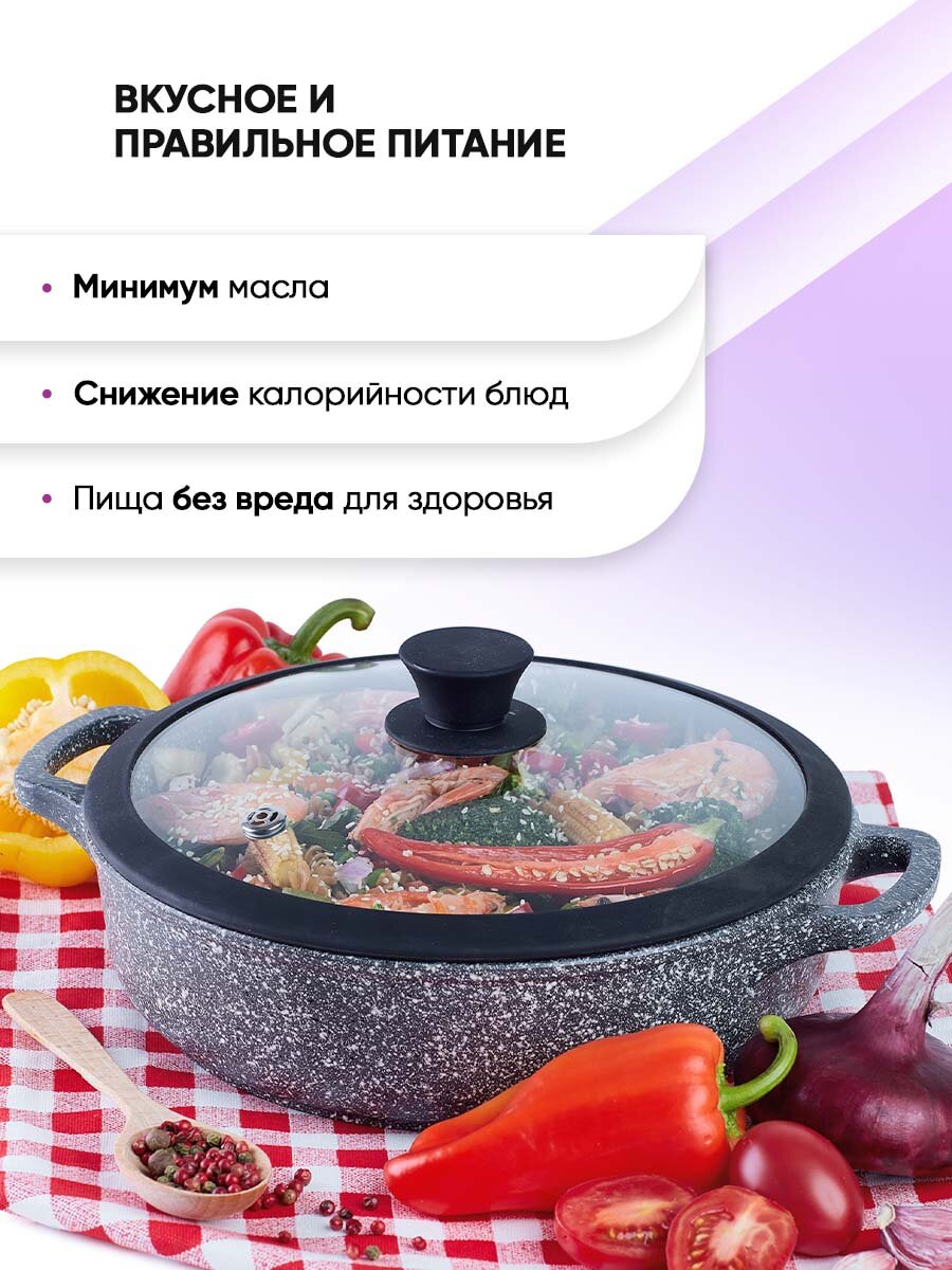 Купить Жаровня антипригарная с крышкой 26см Мрамор ТМ Традиция готовить с любовью