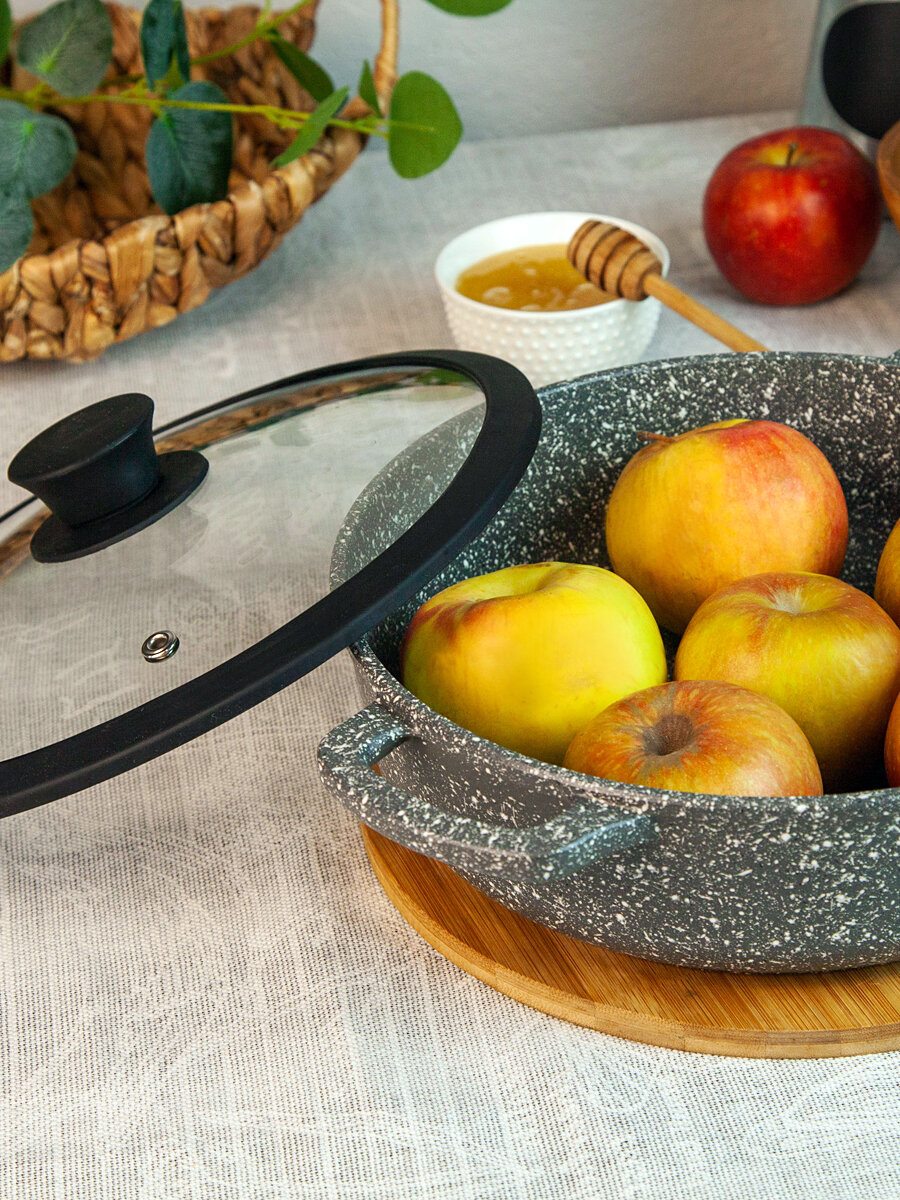 Жаровня с антипригарная литая 24см со стеклянной крышкой Гранит ТМ Традиция готовить с любовью