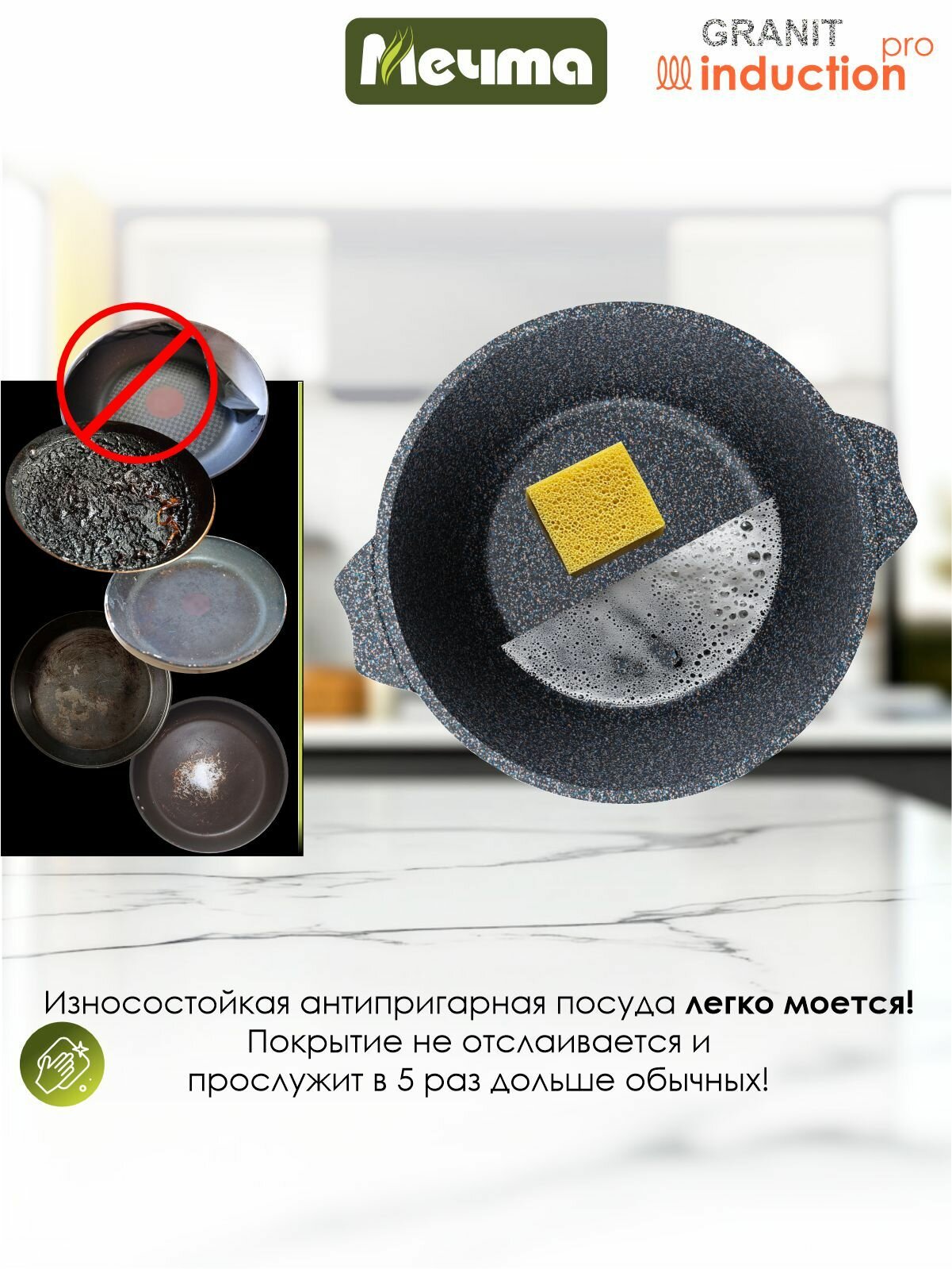 Кастрюля Мечта 4 л Гранит с антипригарным покрытием с крышкой, индукционная