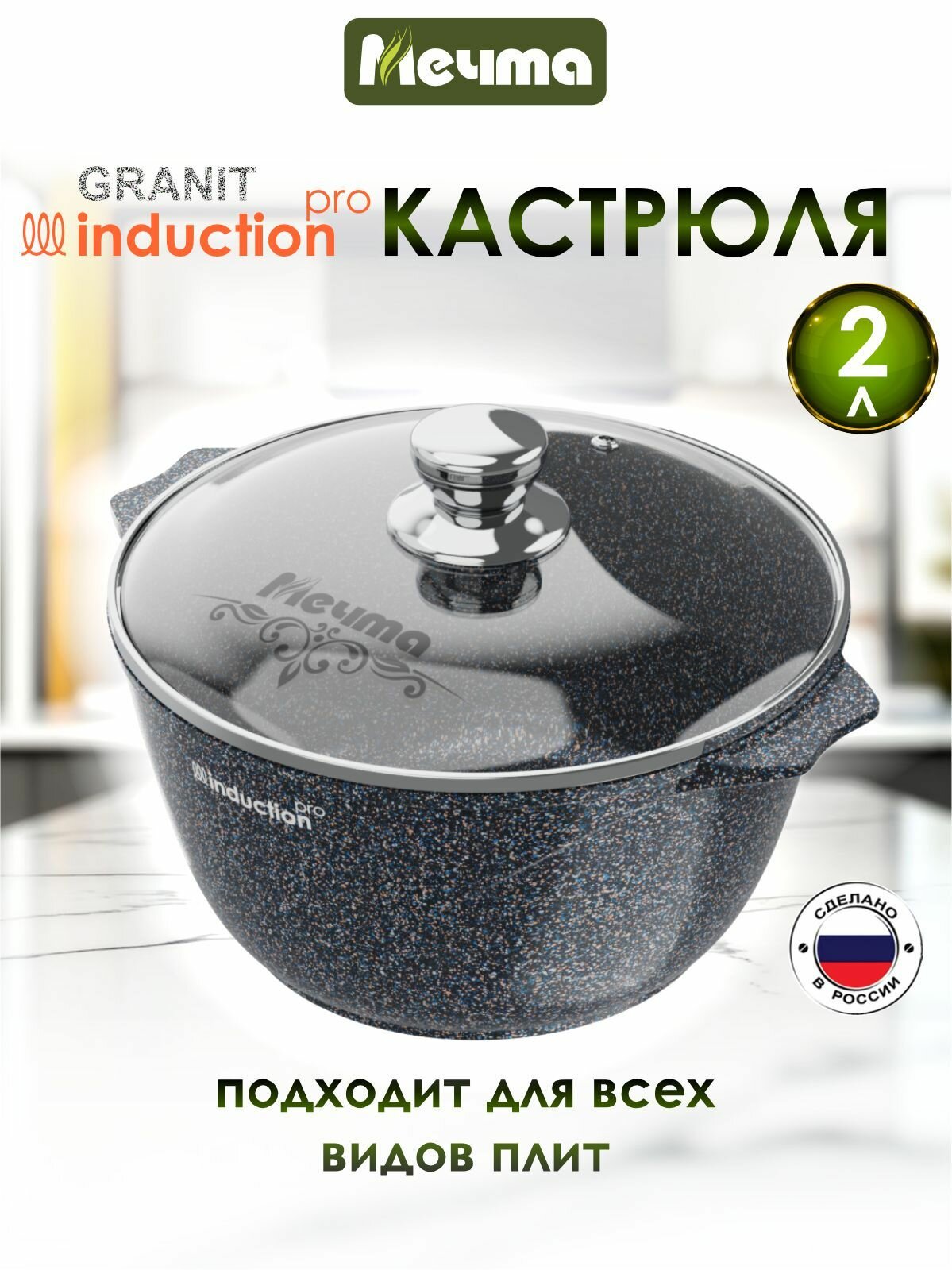 Купить Кастрюля индукционная "Мечта" 2л Гранит с антипригарным покрытием с крышкой, можно мыть в посудомоечной машине