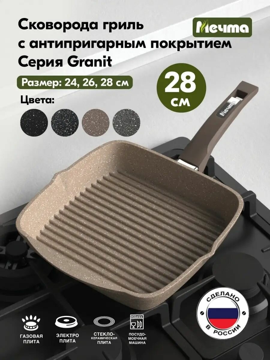 СохранитьСковорода-гриль Мечта 28*28 см АП Гранит brown 68806 интересное:
