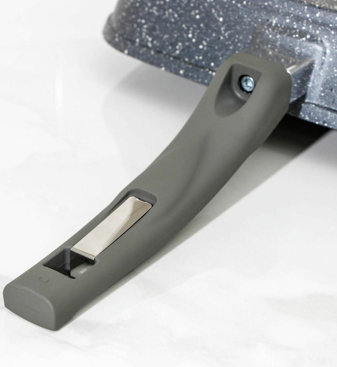 Сковорода-гриль квадрадрат 26*26 "Мечта" антипригарное покрытие Гранит серый со съемной ручкой и стеклянной крышкой