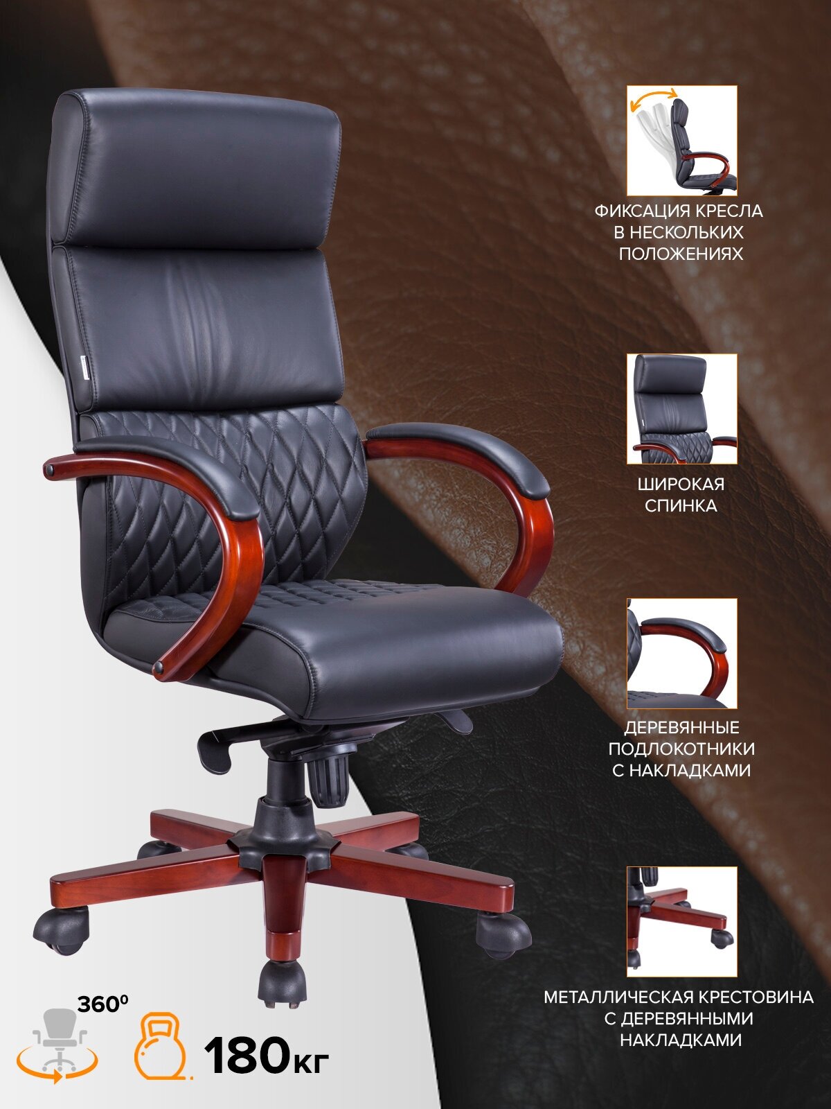 Компьютерное кресло для руководителя Everprof President Wood Дерево / Кожа Черный