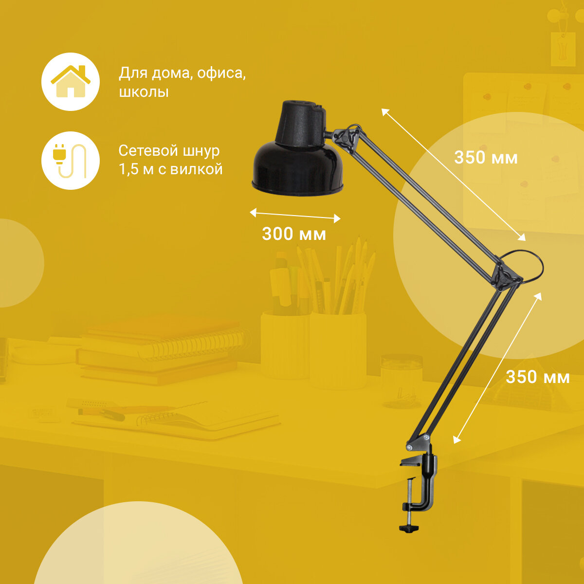 Купить Лампа настольная на струбцине Бета, Е27, черный, Трансвит