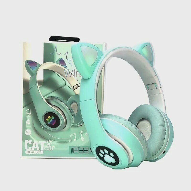 Беспроводные наушники Cat Ear P33M с Bluetooth и светящимися кошачьими ушками (зеленый)