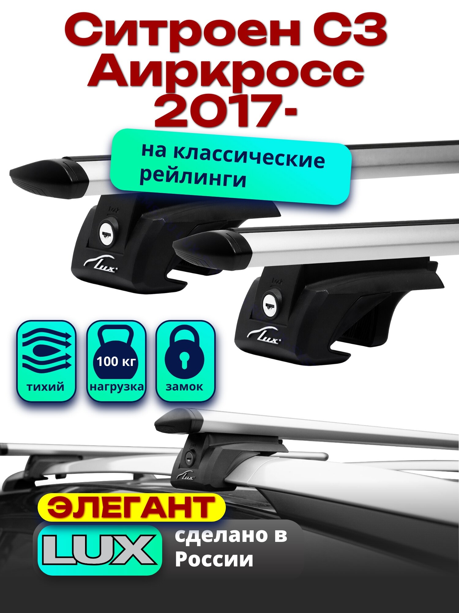 Багажник на крышу LUX элегант с замками дуги аэро-классик (53мм) 1,2м Ситроен С3 Аиркросс 2017-2022, а:LUX.0256