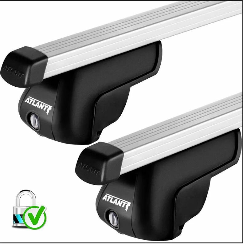 Купить Багажник Атлант для Renault Koleos / Рено Колеос Кроссовер 2017-н. в. на интегрированные рейлинги - прямоугольная дуга, серебристая (макс. нагрузка 50 кг.) с замком