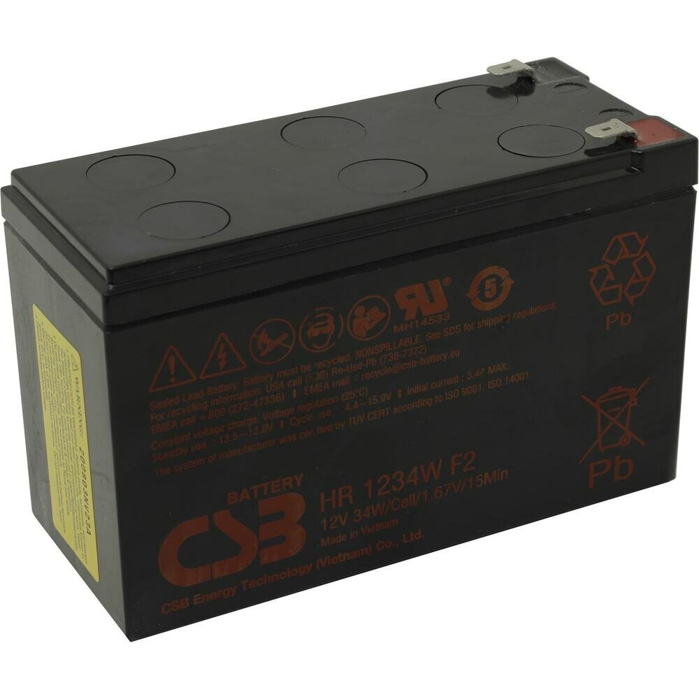 Аккумулятор CSB HR 1234W F2 (12В 9Ач/12V 9AH) для ИБП (UPS)/систем охранно-пожарной сигнализации/аварийного и дежурного освещения/эхолота