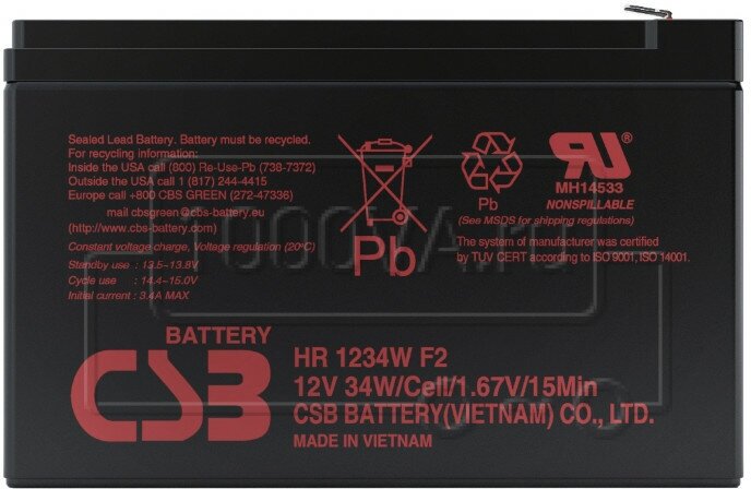 СохранитьСвинцово - кислотный аккумулятор CSB HR 1234W F2 (12 В, 9 Ач) для ИБП интересное: