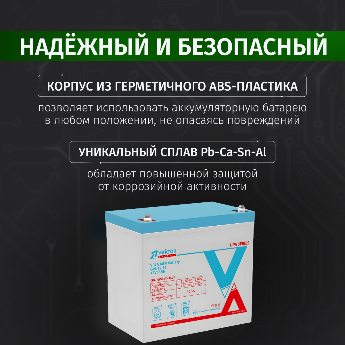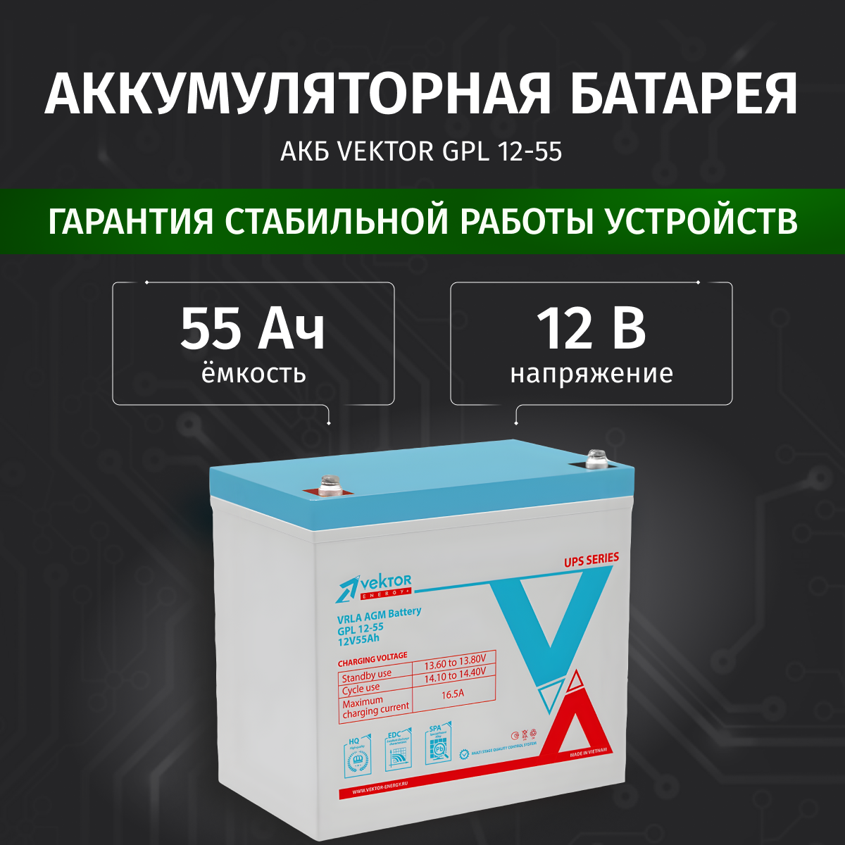 Аккумулятор для ИБП Vektor Energy GPL 55Ач, 12В / АКБ для ИБП / аккумулятор для бесперебойника интересное: