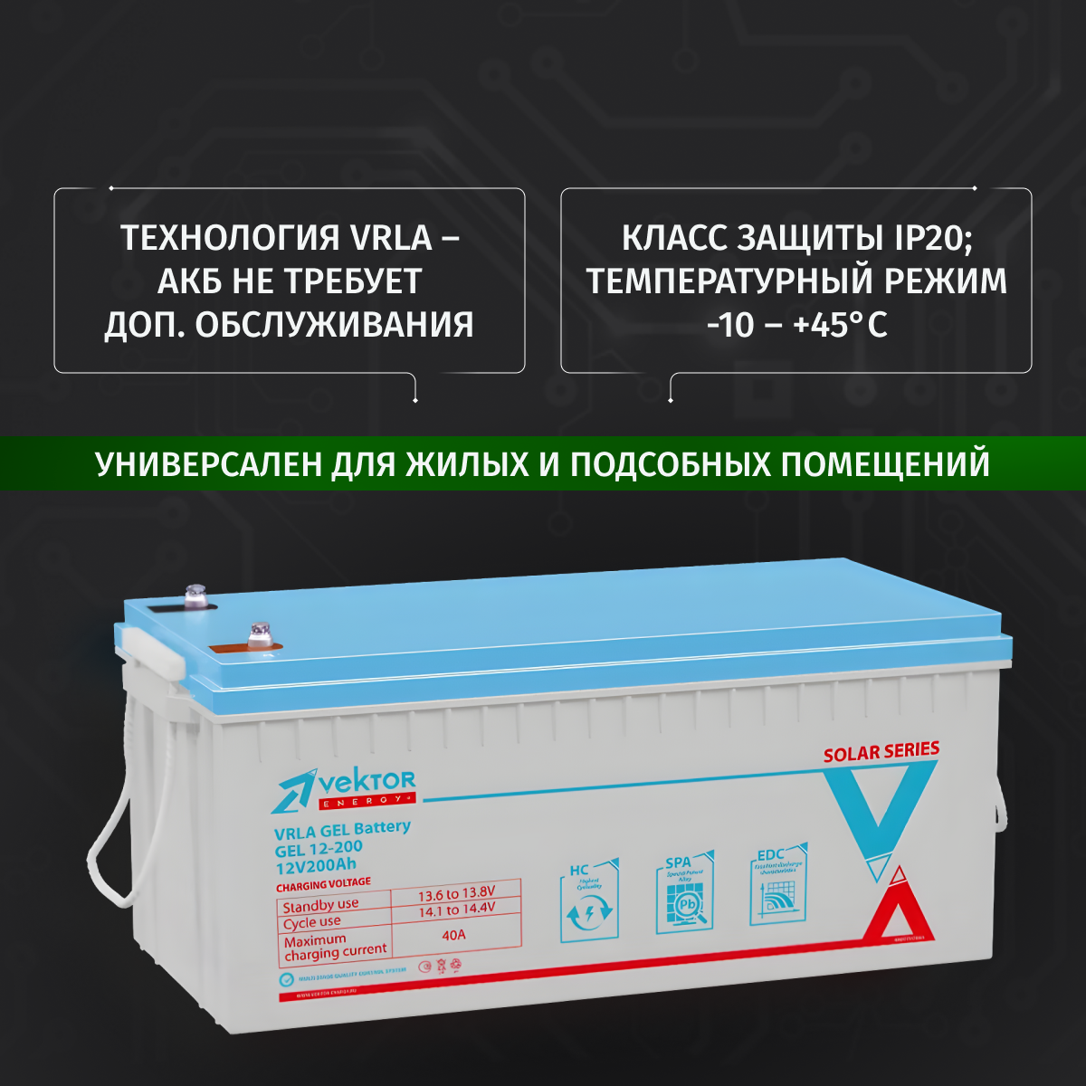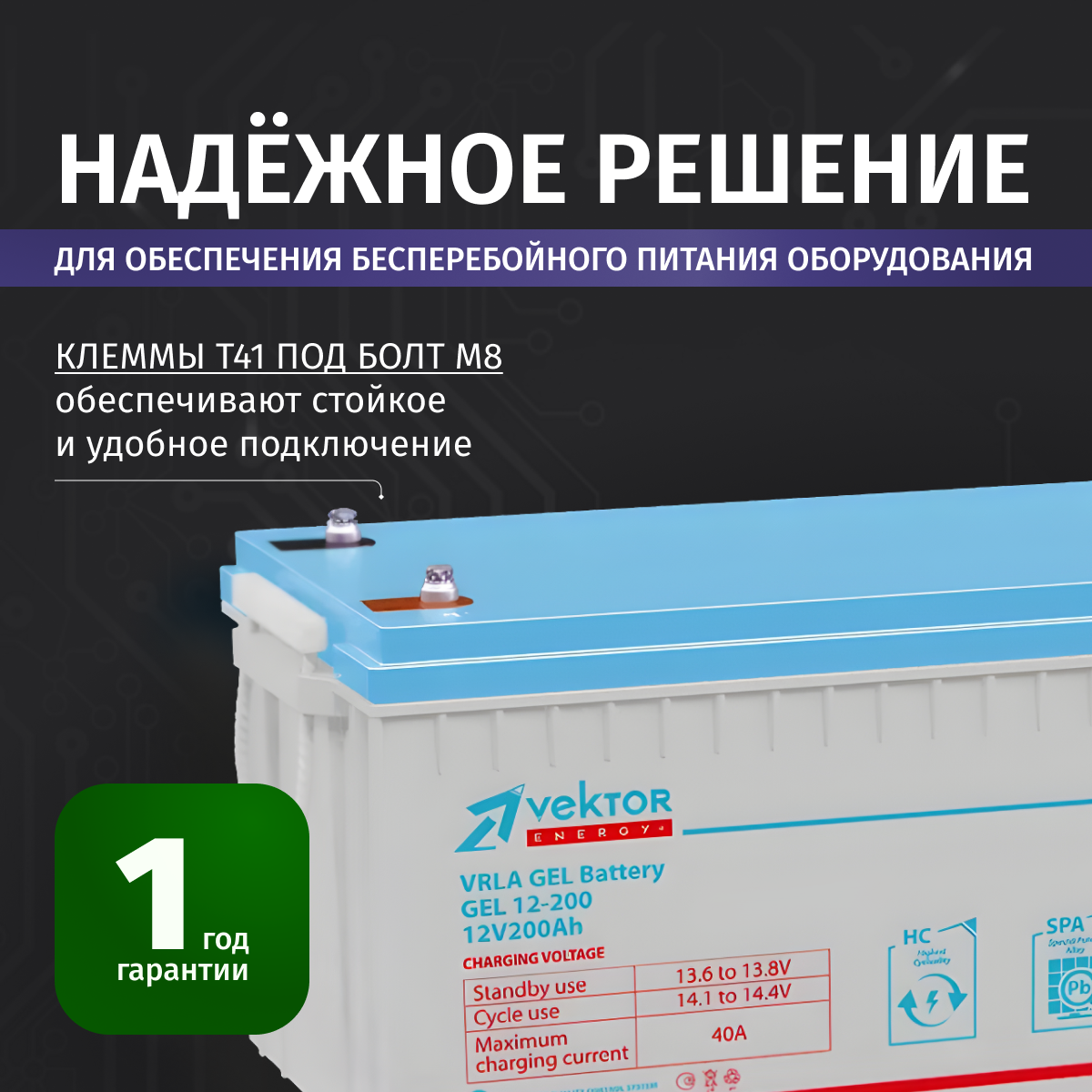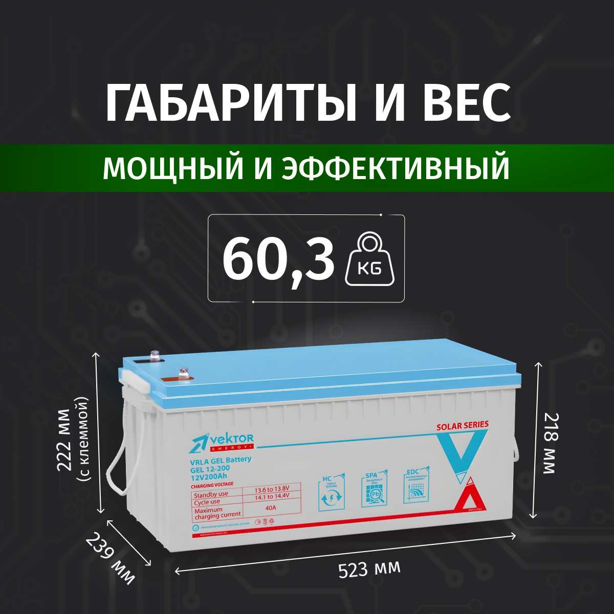 Аккумулятор для ИБП Vektor Energy GEL 200Ач, 12В / АКБ для ИБП / аккумулятор для бесперебойника интересное: