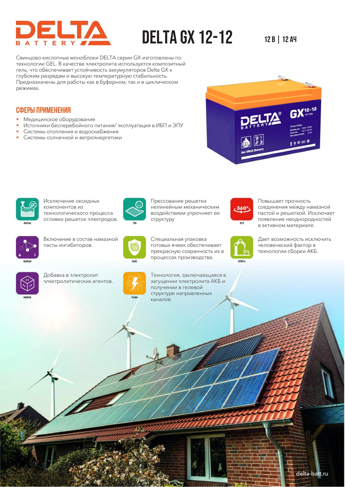 СохранитьАккумуляторная батарея DELTA GX 12-12 12В/12Ач (V/Ah) AGM Гелевый F2. Срок службы 15 лет. интересное: