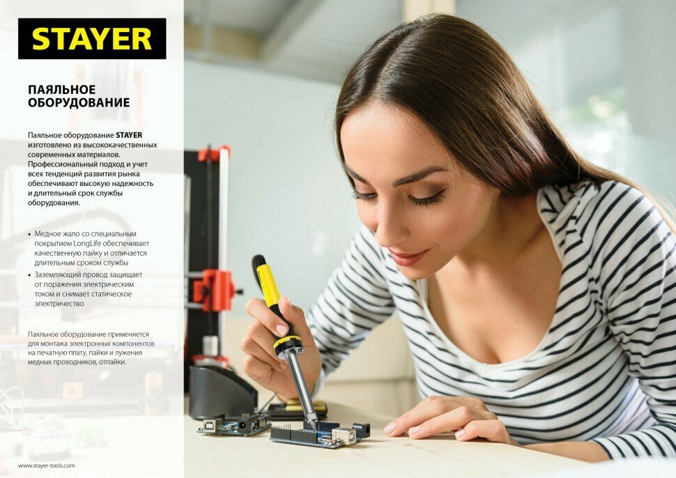 Электропаяльник STAYER 60Вт, конус, в наборе припой+подставка, 2К рукоятка, PROTerm