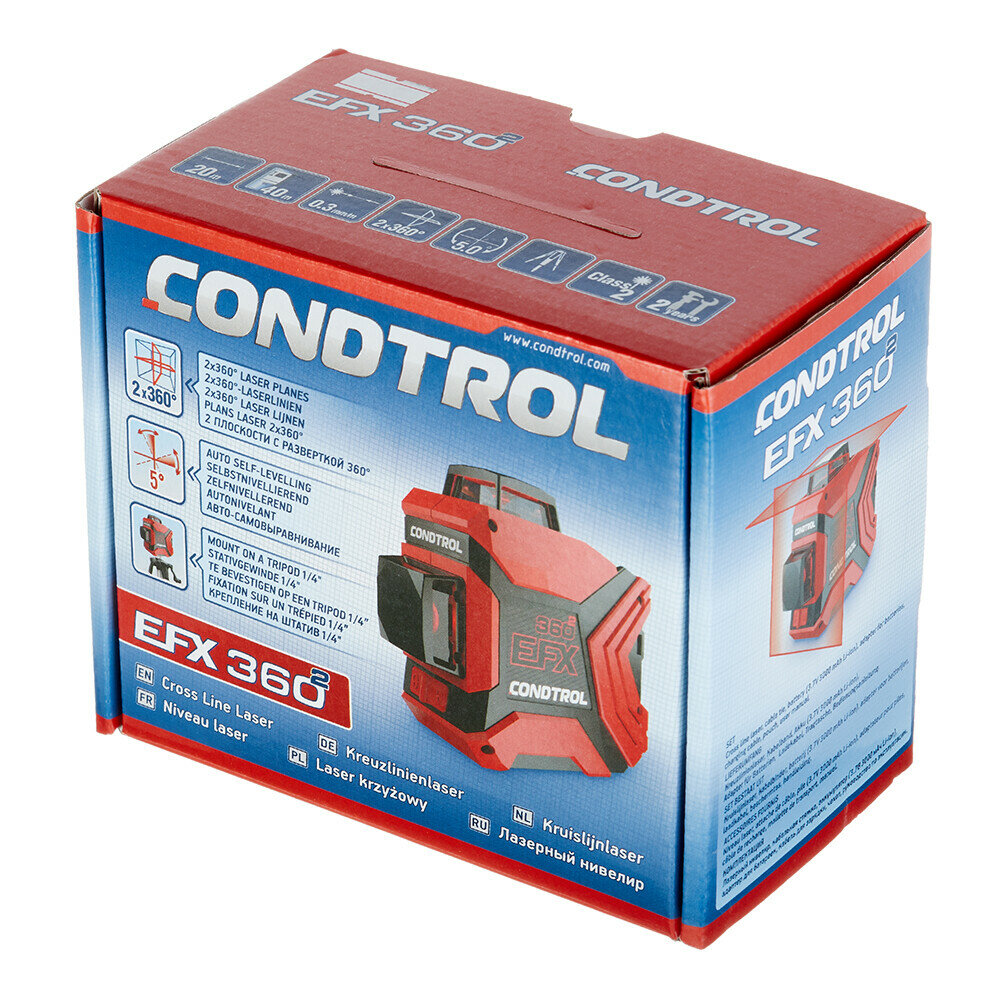 Купить Лазерный уровень CONDTROL EFX 360-2, красный, 3D, 2 луча, автовыравнивание