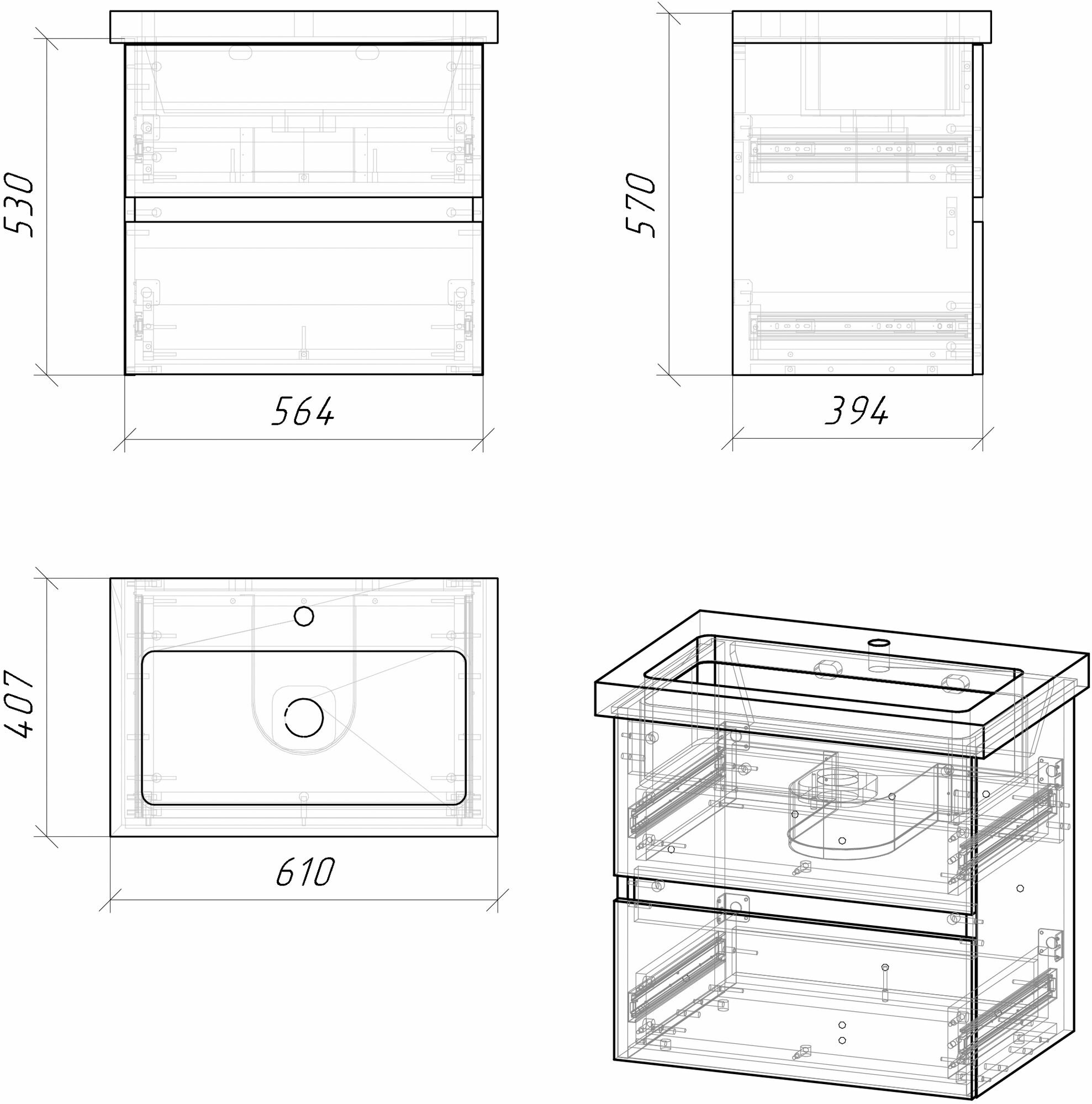 Тумба подвесная с 2 ящиками Grossman Адель-60 см под раковину Адель-60