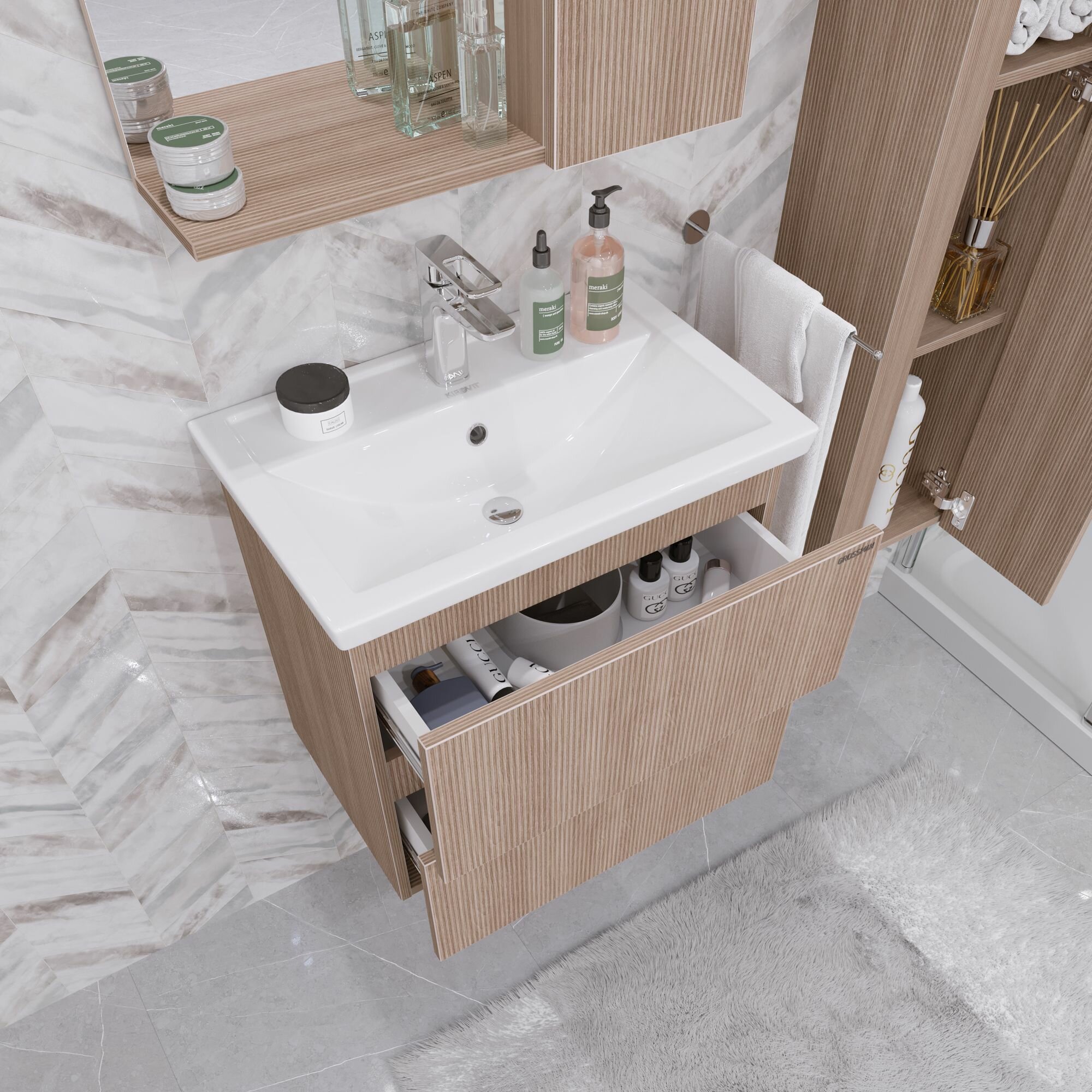 Тумба с раковиной Grossman Юнит 70 подвесная кадена лайт
