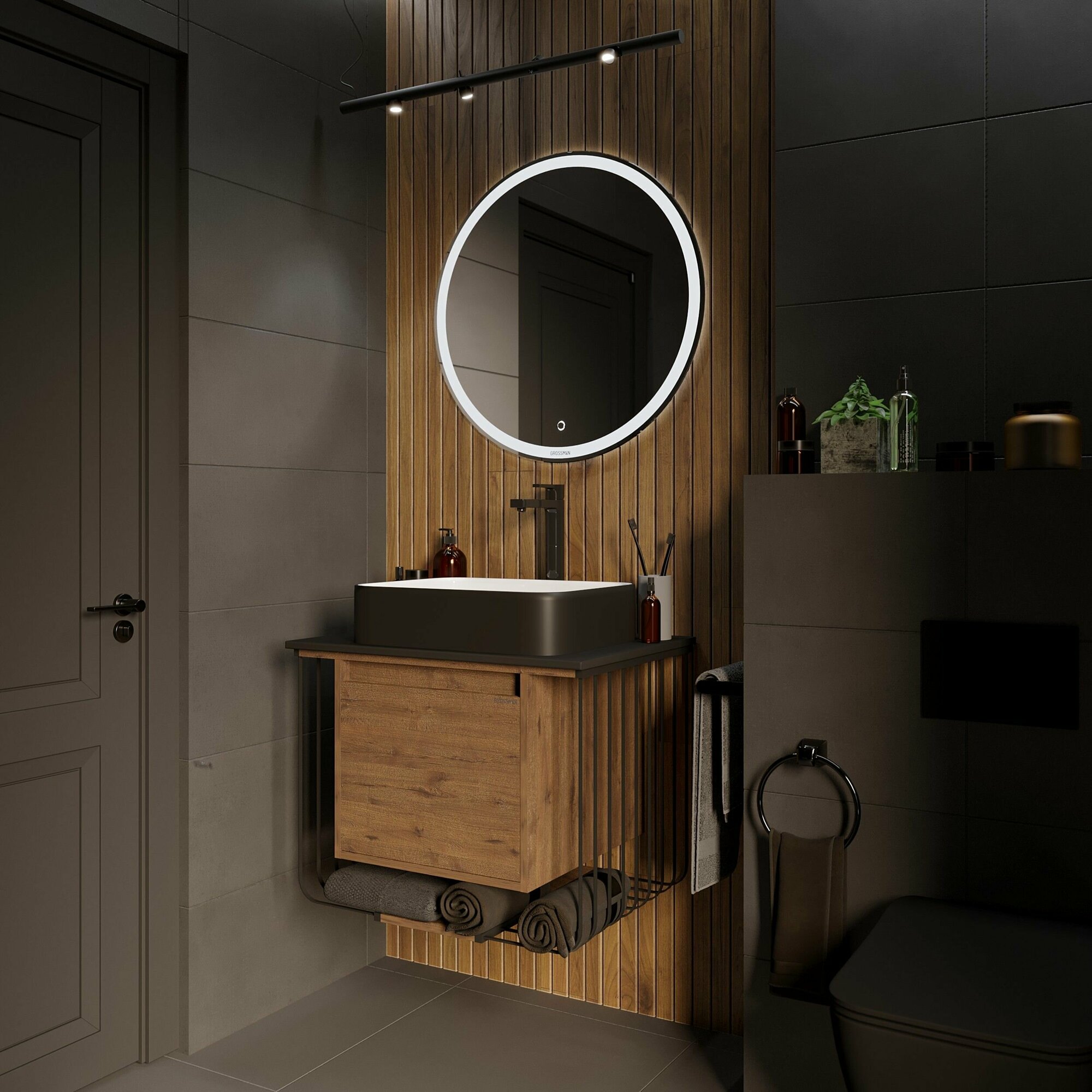 Тумба под раковину Grossman СМАРТ-60 см с 1-м ящ.+1 внутр. веллигтон/графит 106009