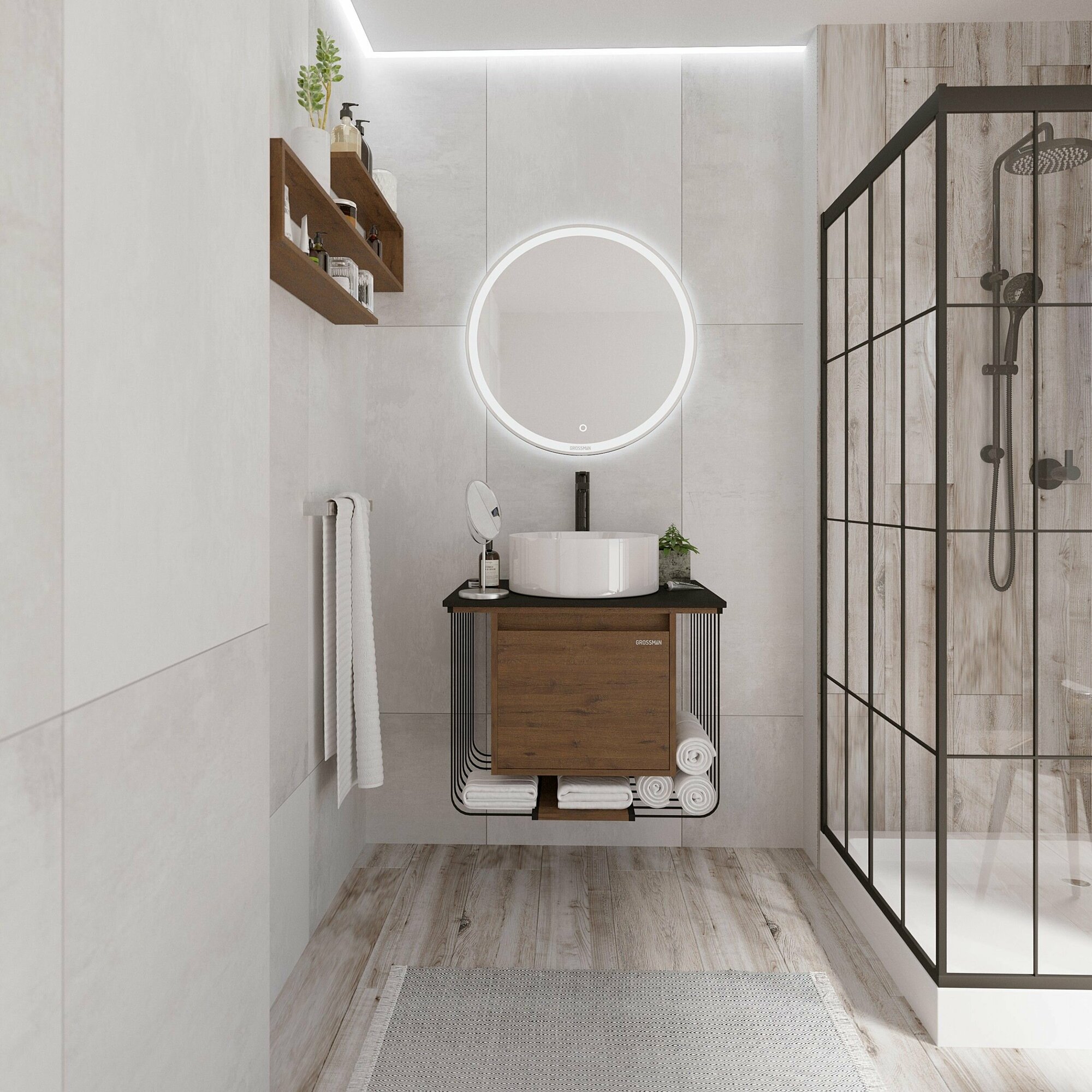 Тумба под раковину Grossman СМАРТ-60 см с 1-м ящ.+1 внутр. веллигтон/графит 106009