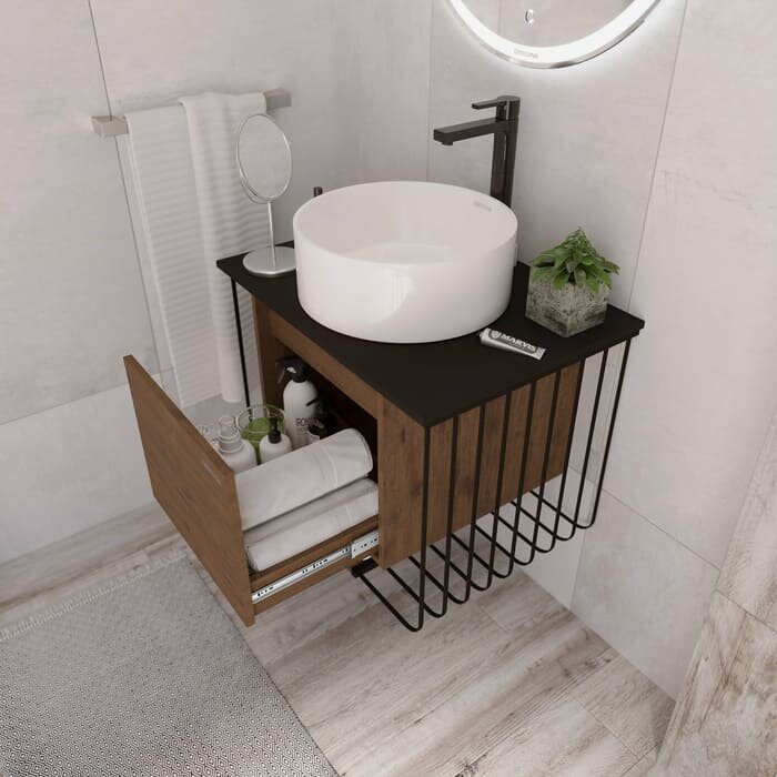 Тумба под раковину Grossman СМАРТ-60 см с 1-м ящ.+1 внутр. веллигтон/графит 106009