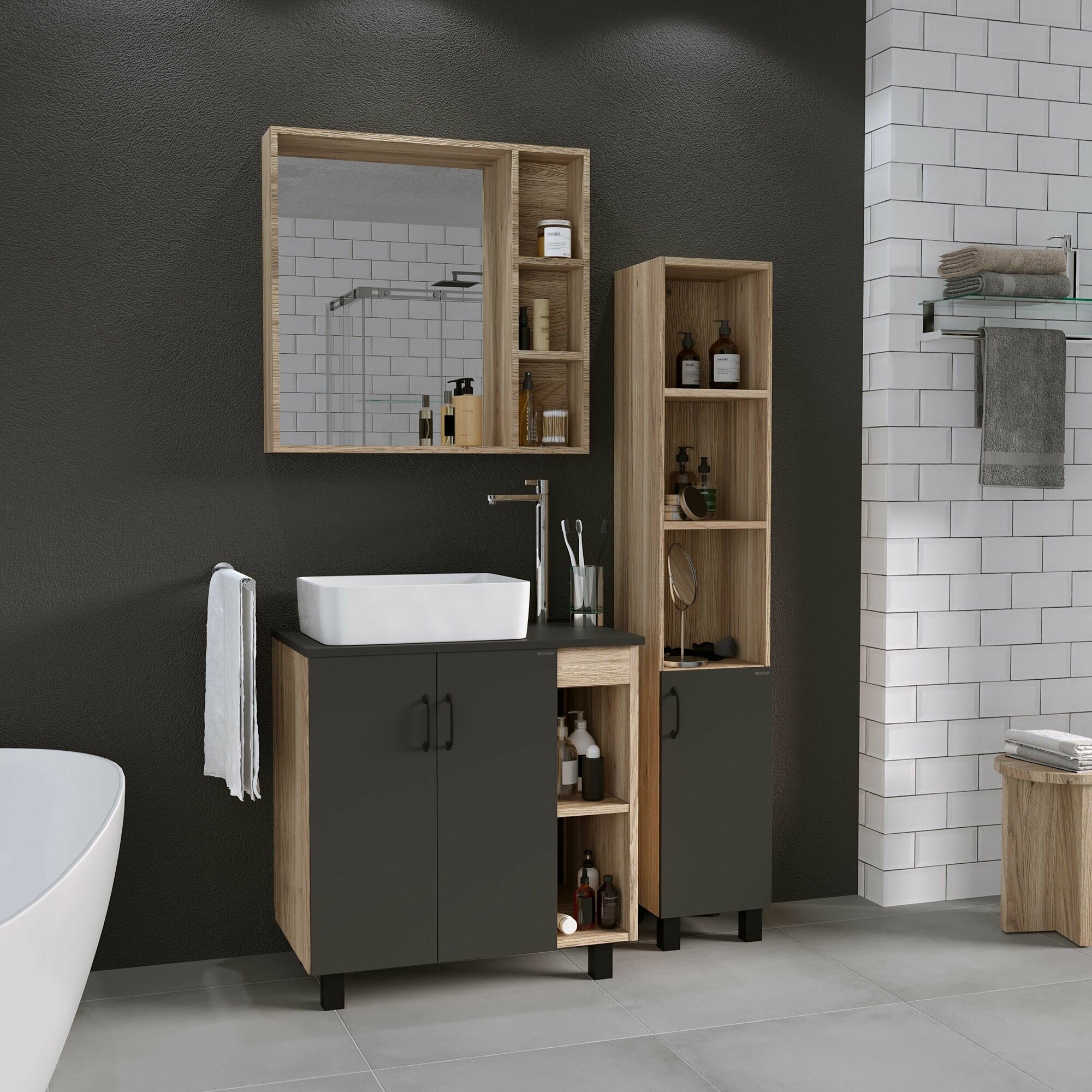 Тумба с раковиной Grossman Флай 80 дуб сонома/серая