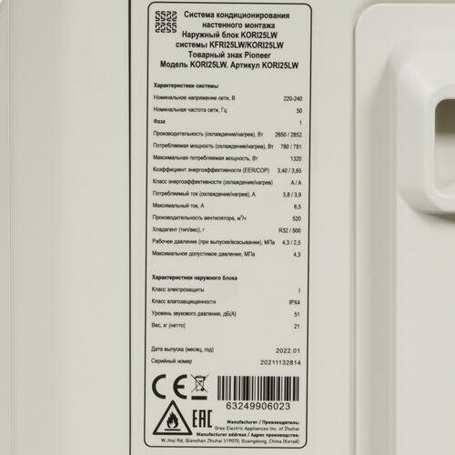Кондиционер настенный сплит-система Pioneer KFRI25LW/KORI25LW белый интересное: