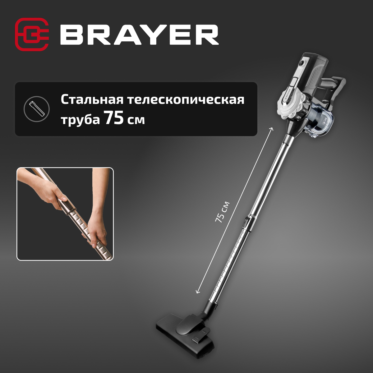 Пылесос вертикальный беспроводной Brayer BR4267, потребляемая мощность 120 Вт, контейнер 0,5 л, серый