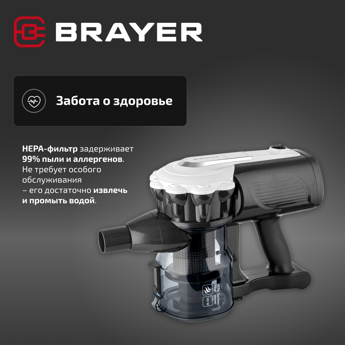 СохранитьВертикальный пылесос BRAYER BR4269 600 Вт, всасывание 185 Вт, 0.8 л, универсальная щётка, длина шнура 8 м интересное: