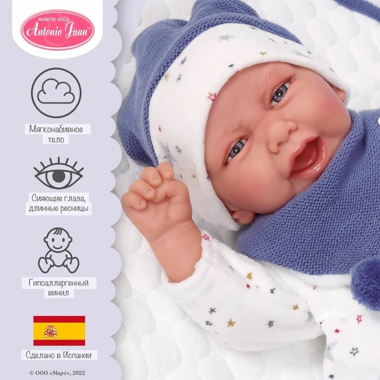 Кукла младенец Antonio Juan Реборн Пол в синем 40 см мягконабивная 3303 интересное:
