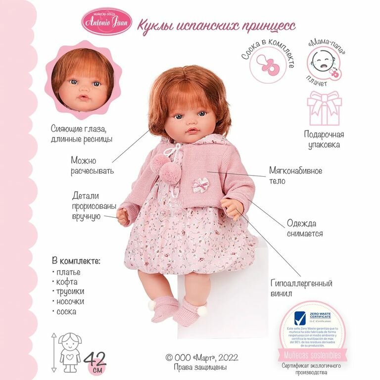Кукла говорящая Antonio Juan Реборн Изабелла в светло-розовом 42 см плачет мягконабивная 1671Br интересное: