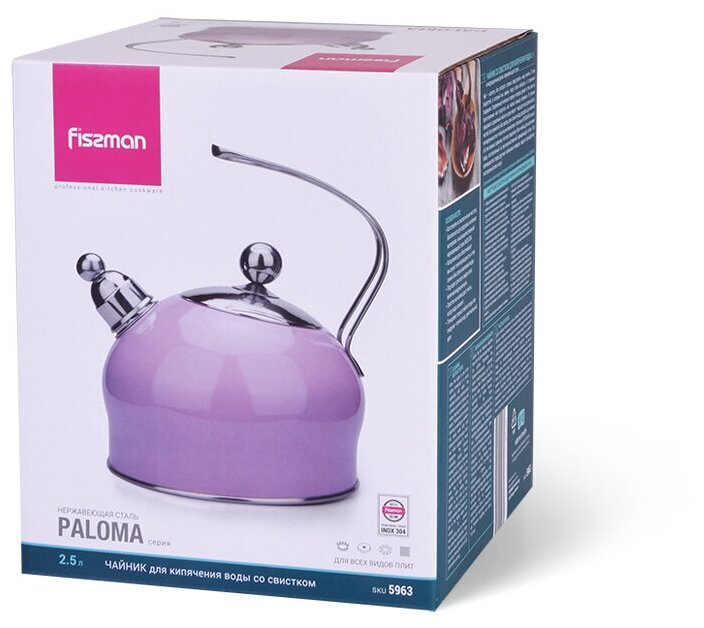 Купить 5963 FISSMAN Чайник для кипячения воды PALOMA 2,5л, цвет сиреневый (нерж. сталь)