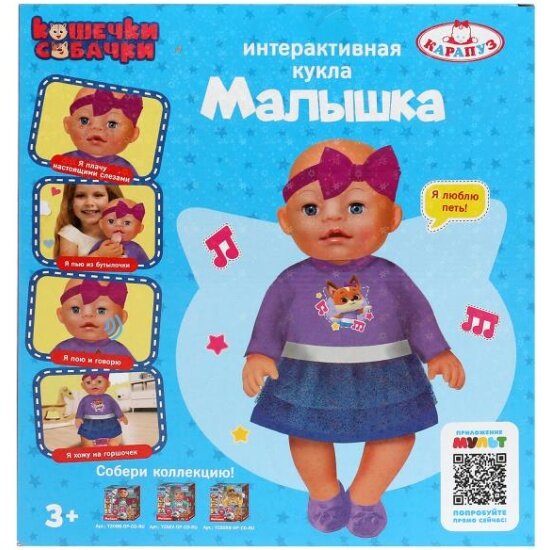 Пупс озвученный Кошечки - Собачки, 30 см, пьет, писает, плачет, 40 фраз и песен Карапуз Y30BB-DPC-CD-RU