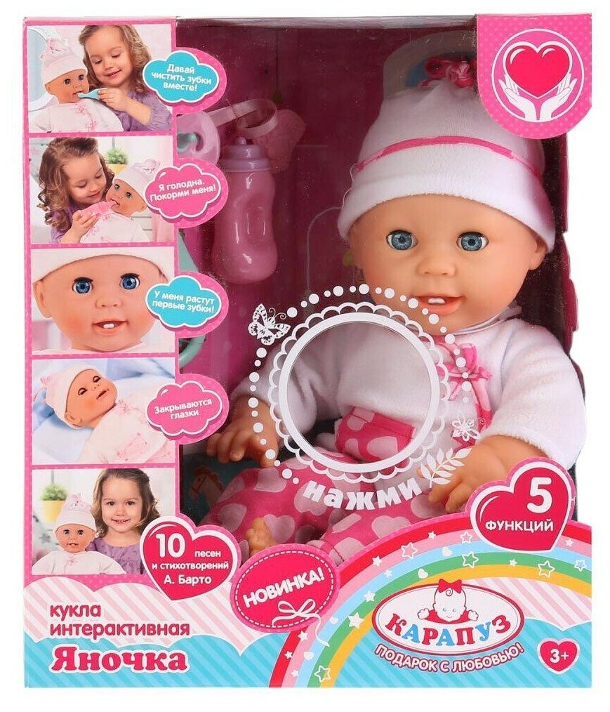 Пупс Карапуз Яночка, 40 см, 10 песен А. Барто, 5 функций 16351-RU