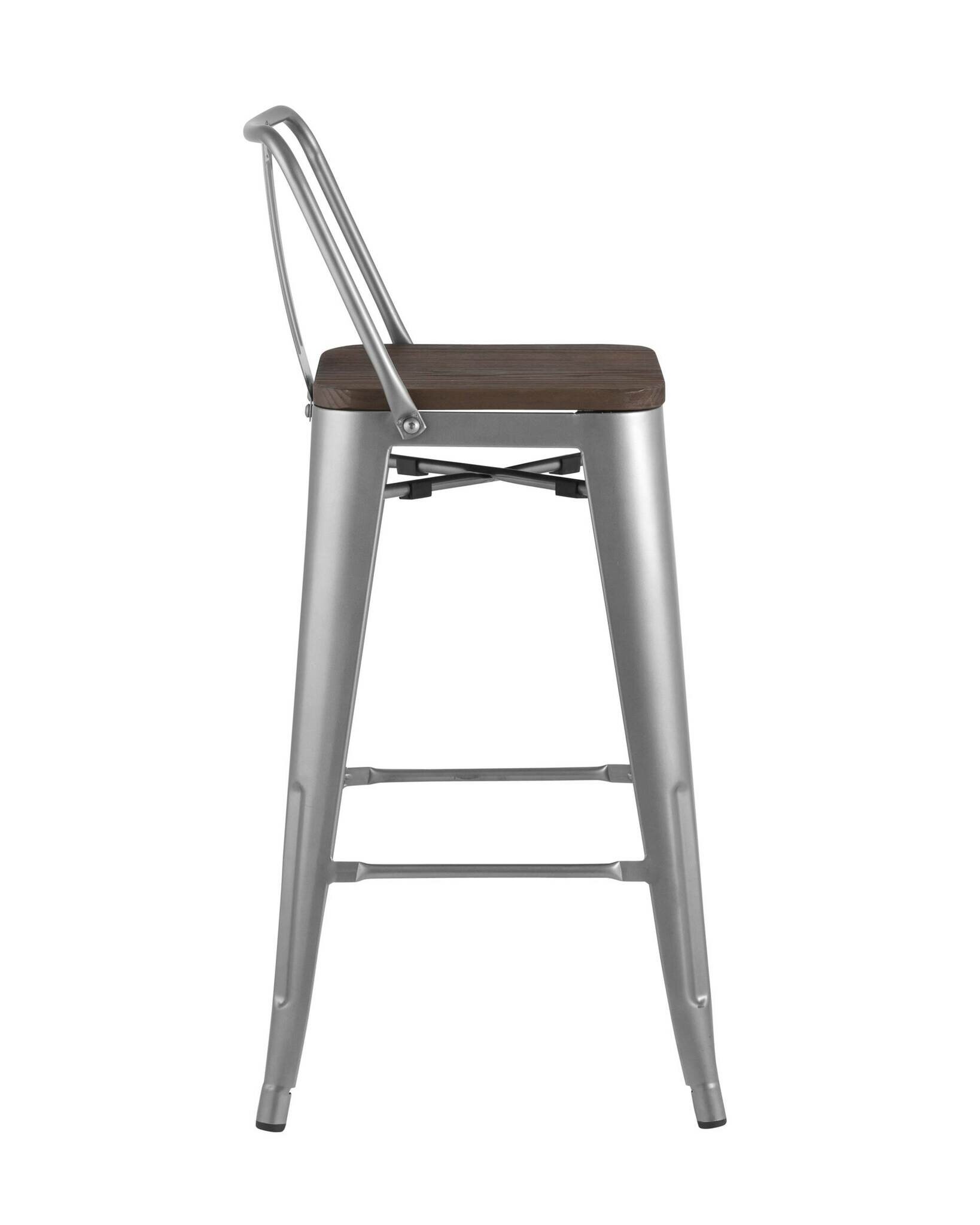 Стул полубарный TOLIX со спинкой серебристый матовый + темное дерево(комплект 4 шт)