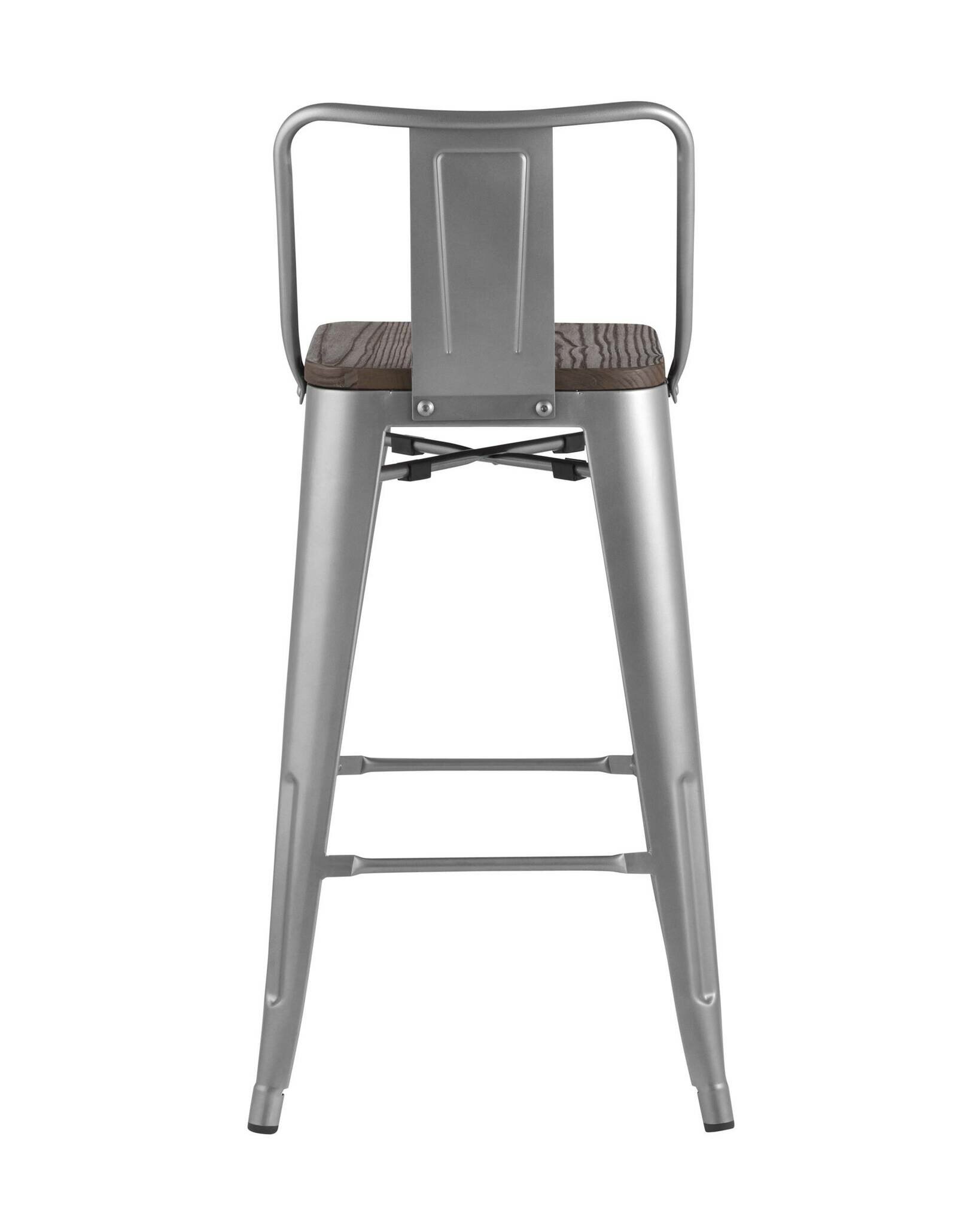 Стул полубарный TOLIX со спинкой серебристый матовый + темное дерево