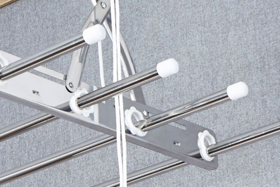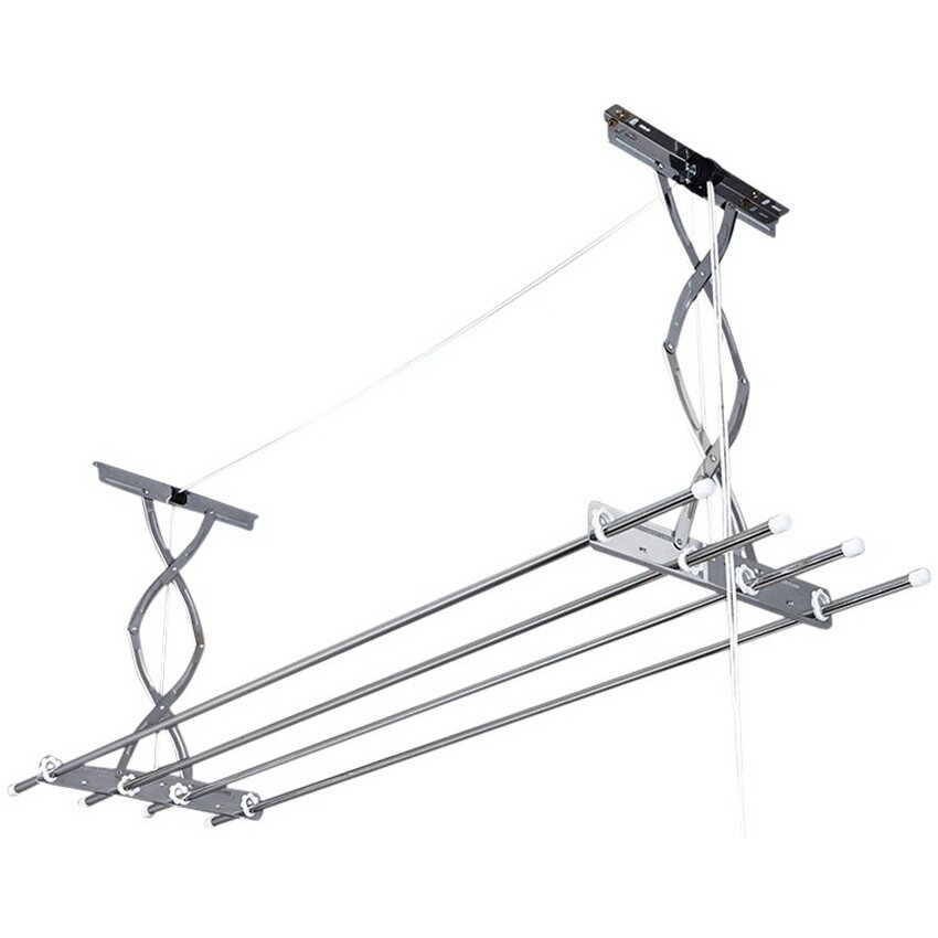 | Дополнительная информация | комплектация: крепление с веревкой и ручкой — 1 шт; раздвижные перекладины — 4 шт; шайба — 4 шт; крепление — 2 шт; дюбель и саморез — по 4 шт; инструкция на русском языке — 1 шт.; раздвижные перекладины от 103 см до 190 см; опускается от потолка на 70 cм, поднимается к потолку до 25 см; расстояние между прутьями: 10 см |