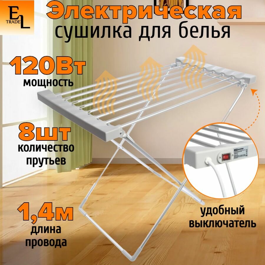 Купить Сушилка для белья электрическая напольная, 8 прутьев, 500*950*740 мм, 120 Вт