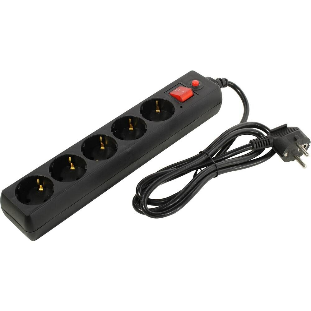 Сетевой фильтр-удлинитель Buro 500SH-1.8-B 1.8м, 5 розеток, выключатель, с заземлением, черный