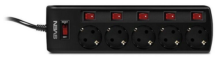 Сетевой фильтр SVEN SF-05PL 3.0 м (5 розеток с индивидуальными выключателями), черный [SV-015169]