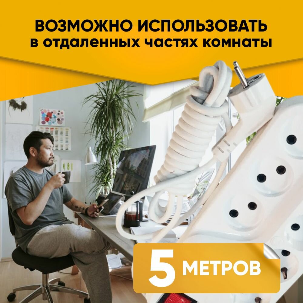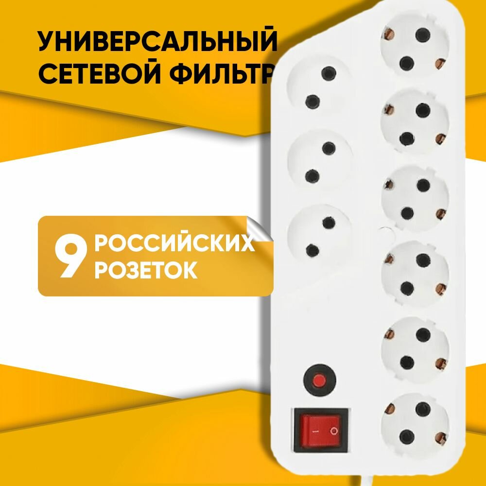 Сетевой фильтр для электроприборов V. I.-TOK, 9 розеток, 5м, белый / Удлинитель розеток с световым индикатором / евростандарт интересное:
