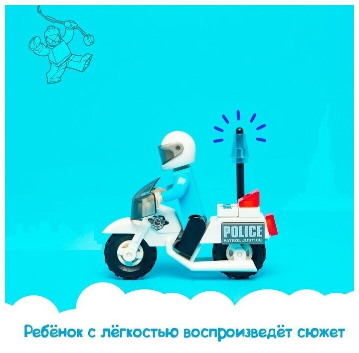Конструктор детский "Полицейский мотоцикл", 26 деталей, совместим с лего, UNICON интересное: