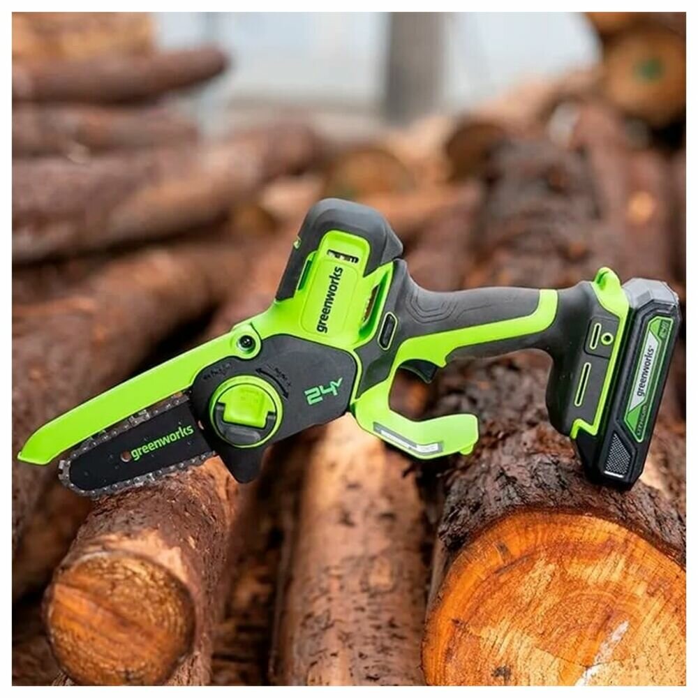 Аккумуляторная цепная пила GreenWorks GD24CSMNX 24В дл. шины: 6" АКБ и ЗУ (2008707)