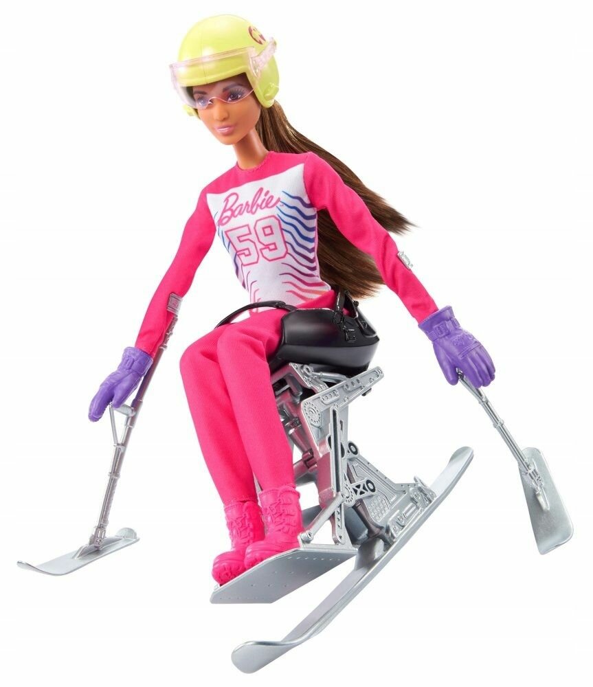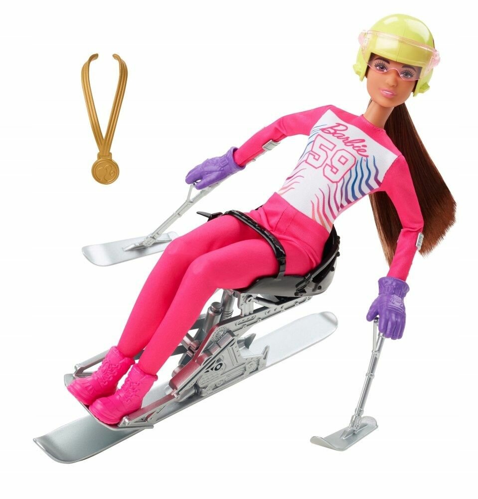 Кукла Barbie Зимние виды спорта Лыжник-паралимпиец, HCN33 темно-розовый