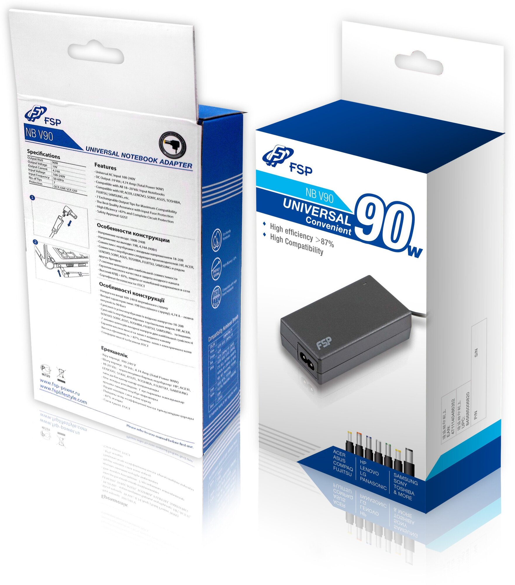Купить Универсальный адаптер для ноутбуков FSP NB V90 (18-20В, 90W/4.74A, 8 сменных коннекторов)