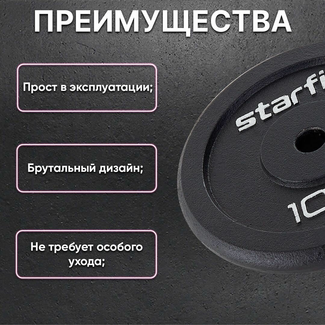 Диск чугунный Starfit BB-204 10 кг, d=26 мм, черный (4680459117991) .