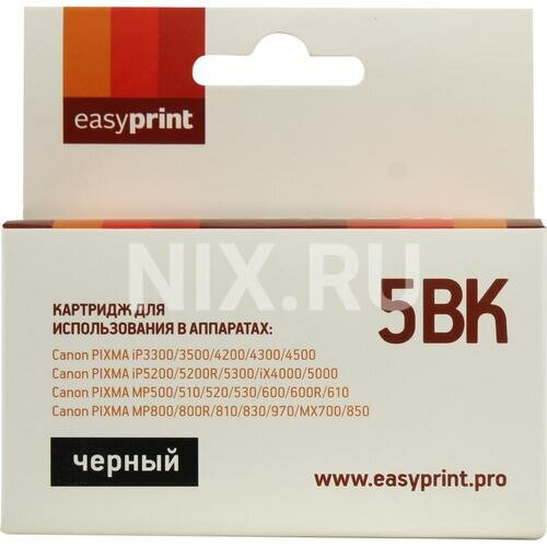 Картридж EasyPrint IC-PGI5BK для Canon PIXMA iP4200/4300/iX4000/5000/MP500/600, черный, с чипом