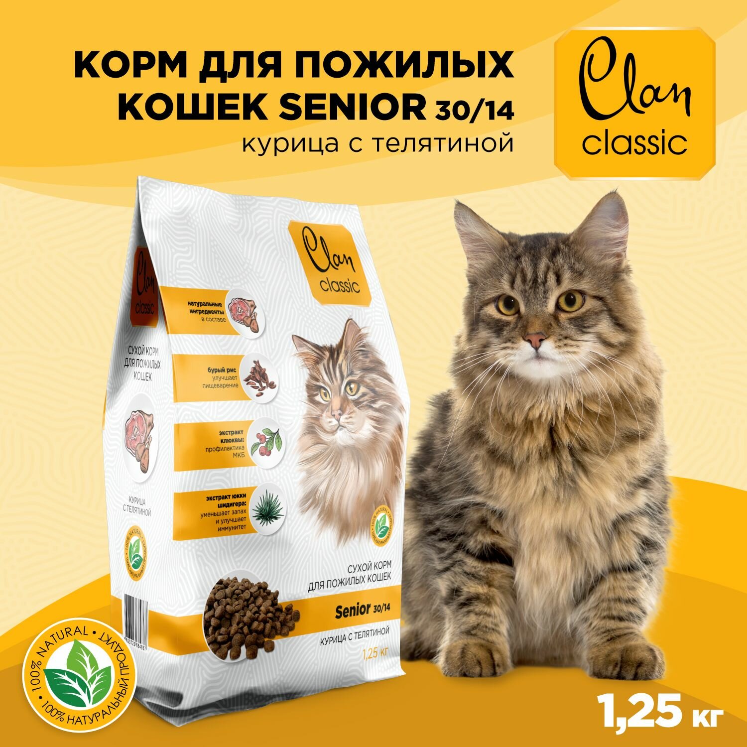 Сухой корм CLAN CLASSIC Senior 30/14 для пожилых кошек, курица, телятина 1,25кг