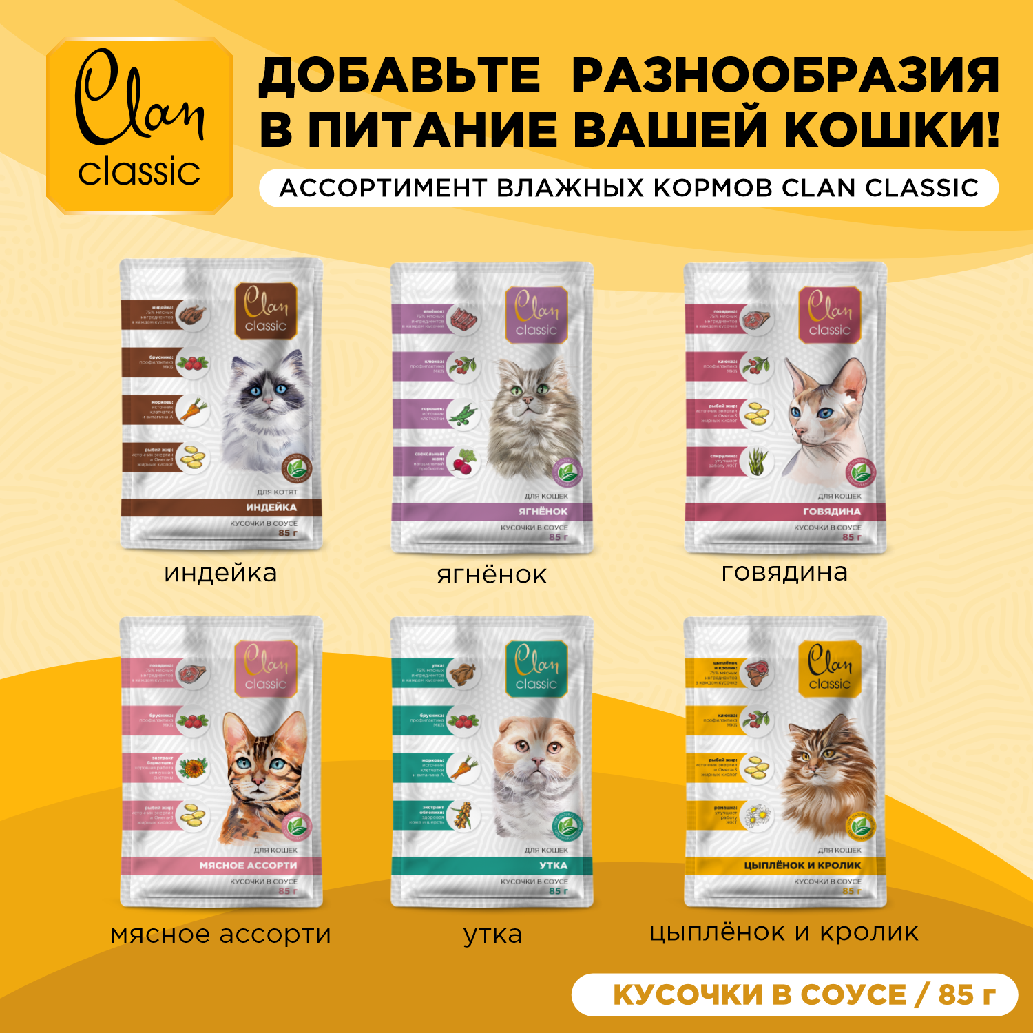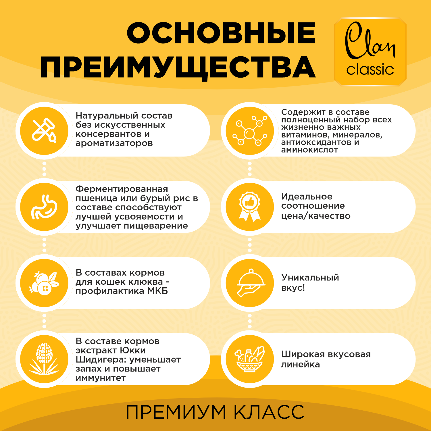 Clan Classic Senior-сухой корм для пожилых кошек CLAN с курицей и телятиной 1.25 кг (паштет)